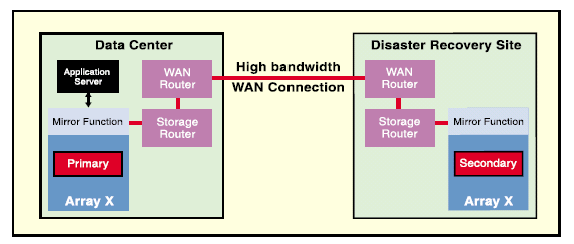 如果你想备份数据到另一个存储系统中(同一建筑物中或异地),有两种方法可以实现:直接连接两个磁盘组,或者,使用中介技术从主机发出两次写指令。第二种方法的弊端在于,给应用服务器运行增加了额外负载。同时,对于复杂的异构系统管理投入加大。不难看出,对于基于主机的,唯一有效的容灾解决方案是array-to-array解决方案,这一方案的构建也非常昂贵。今天,如果想实现磁盘组之间的镜像,需要使用一些专用设备。并且,在方案的实施过程中,需要使用完全相同的两组设备(不同品牌的硬件设备之间,一般都不能直接进行数据传输),一组用于存储使用数据,另一组用于存储备份数据。这不仅仅加大了投入,而且可以说是一种浪费。