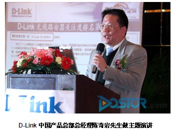 众多的经销商、零售商、合作伙伴及知名媒体参加了此次新品发布活动,D-Link大中华区总裁高鹤轩先生也亲临活动现场并致辞,D-Link中国产品总部总经理陈奇岩先生向与会者详细介绍了D-Link中国最新的产品策略和取得的市场成绩。作为全球消费类网络市场和SOHO网络市场的领导者,D-Link 在2007年802.11n产品的全球销售量已经突破200万套,并成为802.11n路由器全球零售市场的第一名。在活动现场,某知名零售商兴奋地向记者表示,D-Link持续保持在无线网络市场的领先势头,并积极拓展IP摄像机和网络存储等新兴领域,势必会对中国网络设备市场产生更新、更大地影响。