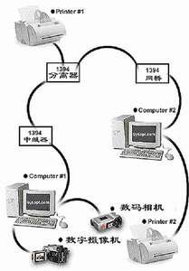 ?IEEE 1394的拓扑结构中,不需要集线器(HUB)就可连接63台设备,并且可以由网桥(Bridge)再将这些独立的子网(Subtree)连接起来。IEEE 1394并不强制要用电脑控制这些设备。而在USB的拓扑结构中,必须通过HUB来实现多重连接,每个HUB有7个连接头,整个USB网络中最多可连接127台机器,而且一定要有电脑的存在。IEEE 1394总线的传输并不一定要通过一台PC,而可以直接将采用IEEE 1394总线的设备连接在一起,比如将一台DVD播放器与电视或机顶盒连接成立体声系统。目前电子消费类产品的行情看涨,同时此类设备与已经采用了IEEE 1394总线接口的摄像机也十分般配。2000年1月在美国拉斯维加斯举行的电子消费类产品展示会上,一些厂商展示了最新的采用 IEEE1394总线标准的产品,如高端扬声器以及音频接收器等。