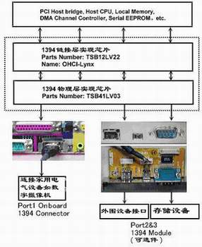 IEEE 1394 是为了增强外部多媒体设备与电脑连接性能而设计的高速串行总线,传输速率可以达到400 Mbps,利用IEE1394技术我们可以轻易地把电脑和如摄像机,高速硬盘,音响设备等多种多媒体设备连接。这个技术有很多大的厂商共同联合发展,既有电脑界的也有家电业的,包括 Apple, Sony, 德州仪器和VIA。