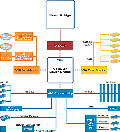 VT8237南桥将率先应用在KT600和PT800芯片组上,而稍后的K8M800或PT880等新款芯片组也将陆续采用,同时威盛目前也已确定未来VT8239南桥的开发计划。