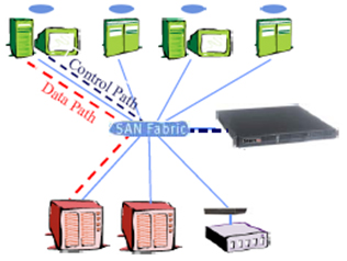 10. 在不同服务器平台间的有效资源共享:在一般的SAN中,Windows和UNIX的平台间数据共享和共存一直都是一个大问题。目前的SAN通过虚拟技术可以支持多文件系统在相同SAN中的共存。