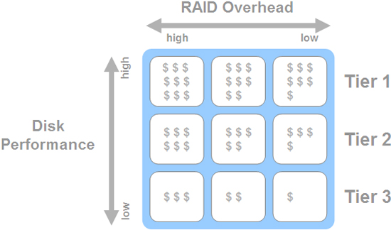 数据分级管理可以将卷构件于不同的种类、大小、速度的磁盘以及不同的RAID之上。数据分级管理通过监控I/O并根据数据访问模型将数据分布在不同的层级之上。