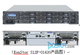 根据用户的需求情况,我们为其所选配的磁盘阵列产品为:EonStor S12F-G1420,数量为:11台,每台配备12块300GB SAS硬盘(共132块),总容量为40 TB。这款盘阵具有以下显著优势: