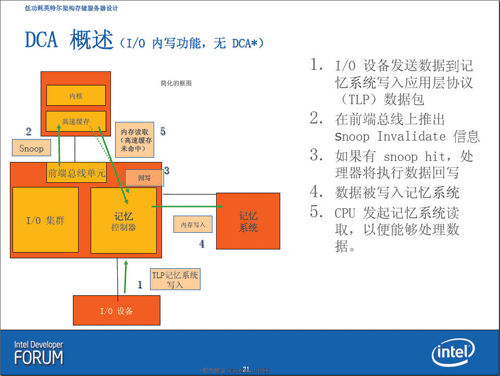 而San Clemente存储服务器有一个亮点颇为值得关注,给支持直接高速缓存访问(DCA),以增强I/O性能。直接高速缓存访问(DCA)提供了一种机制,提高处理器高速缓存命中率,降低读取延迟,从而改进存储和网络性能。其主要作用是帮助CPU在没有从高速缓存成功取得数据的时候,通过对DCA的预取数据的读取,以提高CPU的高速缓存命中率。举例来说,CPU到高速缓存去读取数据,假设现在的情况是读取失败,没有命中任何数据,当没有DCA的情况下,CPU将直接到内存去读取数据,如果有DCA,DCA将会把CPU需要的数据预取出来,提供给CPU以避免CPU到内存系统去读取数据而耽误的时间。