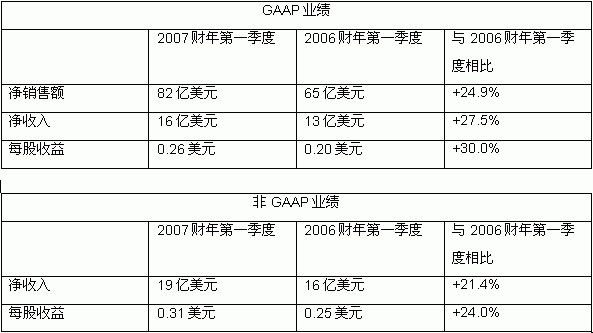 存储在线 11月9日消息:思科公司今天发布了截止到2006年10月28日的2007财年第一季度的业绩报告。思科公司在第一季度的净销售额为82亿美元,根据GAAP计算的净收入为16亿美元,合每股0.26美元;非GAAP净收入为19亿美元,合每股0.31美元。思科公司于2006财年第三季度收购的Scientific-Atlanta公司在2007财年第一季度为思科公司带来了5.84亿美元的销售额。