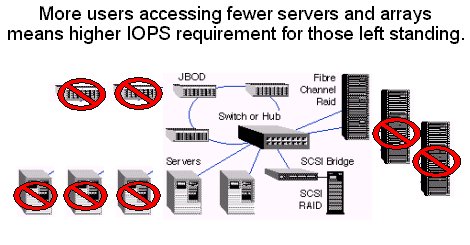 目前的存储阵列只能说是性能一般的存储解决方案。通常人们将14块硬盘安装于一个3U存储阵列或JBOD(简单磁盘捆绑)机壳内。其中的14个插槽都使用的是10K或15K RPM的硬盘。随着体积更小、性能更高硬盘的出现,在一个2U构架内可以捆绑大约30块硬盘,创造出迄今速度最快、性能最强的存储阵列。这款新的2U系统在以每单位IOPS性能为基准的测试中,其性能将超越目前普通的3U机架存储阵列近140%。