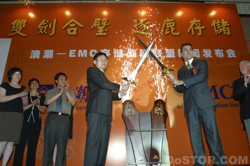 存储在线 6月15日北京消息:2004年6月15日,越来越热闹的中国存储市场达到了高潮的顶点。在题为“双剑合璧,逐鹿存储”的联合新闻发布会上,浪潮(北京)电子信息产业有限公司与全球信息存储领域领导厂商美国EMC公司在北京正式缔结存储战略联盟,在存储领域展开全面的合作,并将携手掀起一场国内中端存储市场的普及风暴。这标志着商用计算与服务的领先厂商浪潮北京公司,正式将存储作为与服务器并肩发展的战略性支柱产业,并启动了以三年内进入国内存储前三甲为目标的全新发展战略。科技部的领导及英特尔(Intel)公司相关负责人也以特邀嘉宾的身份到场祝贺并见证了本次结盟仪式。