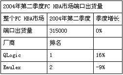 第二季度QLogic首次在HBA端口出货量上领先Emulex,在HBA收入上赶上Emulex。这似乎表明QLogic已克服了它的渠道库存调整困难,而Emulex仍在解决这个问题。