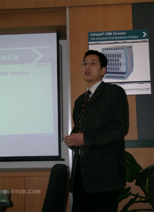 McDATA公司中国区技术经理雷涛在演讲中表示,作为一款骨干级导向器,Intrepid i10K凭着其256个不阻塞端口、本地10 Gbit/s ISLs和正在申请专利的Director FlexPar技术,整合了网络的占地尺寸,降低资本开支和简化管理工作。每一个导向器 FlexPar提供硬网络分区,确保全部传输都得到防火墙的完全隔离。Intrepid i10K骨干级导向器的新技术能够使客户安全地整合企业的基础架构,同时维持独立SAN孤岛的安全性和可控性。