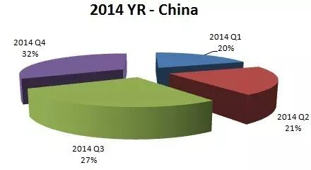中国区由于Q1有春节,因此Q4冲刺的占比更高。