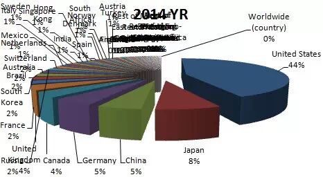 再细分到行政国家维度,中国国内市场占比只有5%,排名第三。