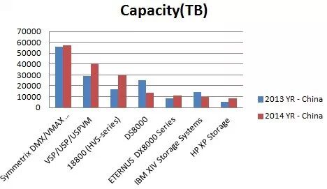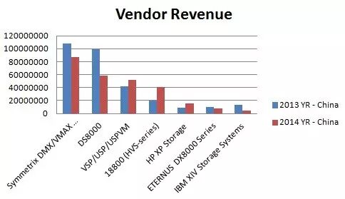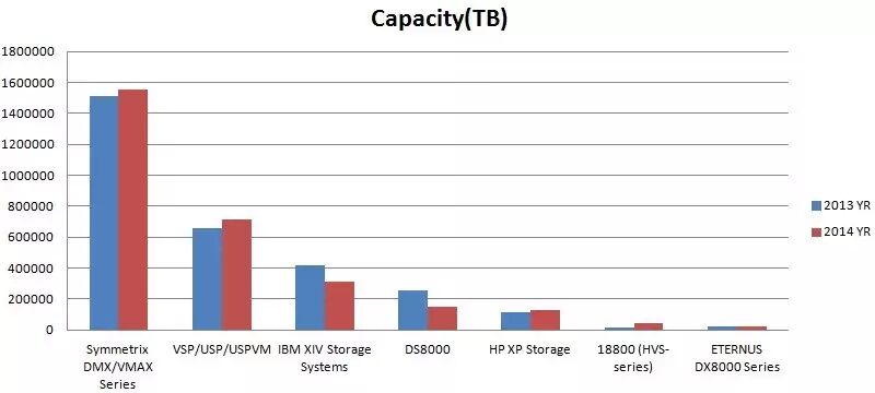 而容量方面,除了IBM其余都是增长的。IBM的DS8000和XIV的容量都在下滑,说明市场对IBM存储还是比较悲观的。
