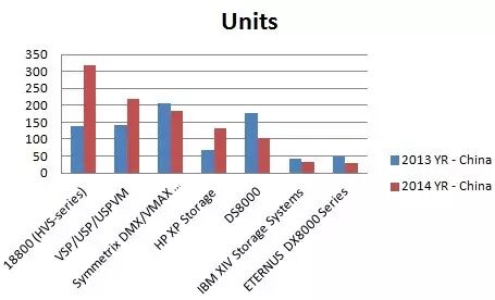 而出货台数,华为18800取得出货第一。而HDS VSP也超过EMC Symmetrix,看来HDS降价促销了。不过也许有EMC的VMAX3发布后,很多用户持币待购的因素。