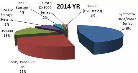 全球维度看,EMC的Symmetrix几乎占据半壁江山。
