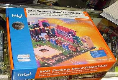 Intel原厂D845GVAD2L主板,采用i845GV芯片组,microATX布局,集成200MHz图形内核。板载音效和网络芯片,搭配PCIX4,DDR DIMM X2插槽。支持PC2100 DDR SDRAM(DDR266内存、USB 2.0、Ultra ATA/100、533MHz FSB和USB 2.0。最高可支持3GHz Pentium 4处理器。售价14,480日元~14,780日元。