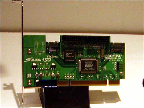 Promise公司展馆内展出了用于支持串口ATA RAID多款接口卡。这里有支持Ultra ATA/133 界面的SATA150 TX2plus接口卡。支持Serial ATA/150界面4端口的FastTrack S150 TX4 RAID接口卡。搭配RAID用的缓冲存储器4端口FastTrack S150 SX4,可以支持RAID 0/1/0 + 1/5。