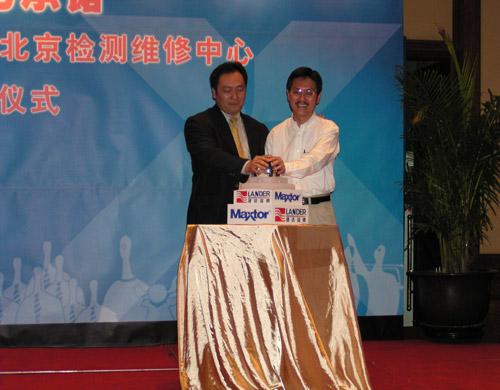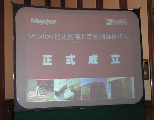 2002年11月26日,北京,今天下午3点半,在北京香格里拉饭店一层宴会厅。迈拓与建达蓝德举行了北京维修检测中心的揭幕仪式。检测中心的成立标志着今后购买迈拓硬盘的消费者将得到更快、更完善的的售后服务。