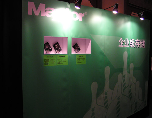 在揭幕仪式上,迈拓同时展示了他们最新推出的7200RPM硬盘,金钻八代和金钻九代。