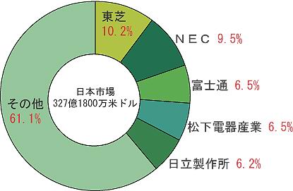 图2:日本半导体市场营业额排名前五名企业的市场占有率