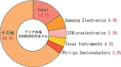 图4:亚洲半导体市场营业额排名前五名企业的市场占有率