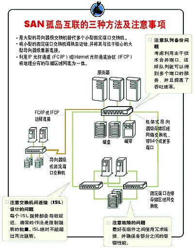 存储区域网(SAN)的诞生使得直连存储信息孤岛可以共享,但是,许多用户认为他们到达的是另外一种孤岛。因此,对SAN孤岛互联的呼声与日俱增。