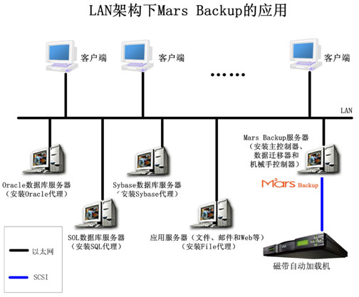 软件: 亚细亚Mars Backup通用数据备份存储软件,包括主模块,客户端软件,数据库代理模块等。