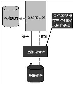 从用户端(备份服务器/网络端)看,虚拟磁带库与传统的磁带库无异,只是使用磁盘阵列作为存储介质而非磁带。从备份的角度看,虚拟磁带库与传统磁带库相比,一方面是备份和恢复的速度提高了,另一方面维护更容易,可靠性进一步提高。