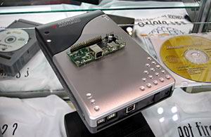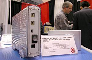 1CENTURY CORPORATION展示了支持FireWire 800和USB2.0的硬盘盒“Ice Cube”。计划2月下旬~3月期间供货。(如下图所示)
