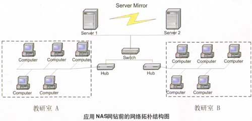 原有的网络配置中,教研室A和教研室B共享一台40GB的磁带备份机,服务器存储也各自分散。管理分散存储在不同服务器上的数据时,由于各种原因数据的存放要经常变换主机存储,因此产生数据存储地址变动,导致检索系统的链接需要做相应的变动,带来大量繁琐的重复劳动。使用MaxAttach NAS 4100,可以将它们存储在同一个存储器中,安全并易于管理,花费不多,成效却很显著。它的互用性,可实现不同的文件共享,为所有用户提供备份存储的可能。