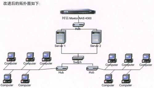 为满足这些需求,用户选择了Maxtor网钻网络存储产品中的MaxAttach NAS 4100网络存储服务器,以扩充网络存储空间的做法升级校园信息网,升级后的网络拥有独立于原有网络中的320G网络存储空间,从根本上解决了上述问题。