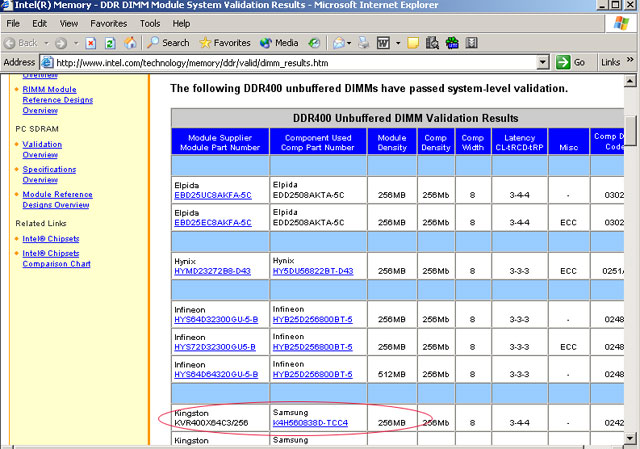 Intel在官方网站上公布了这些通过认证的DDR400内存的型号和容量。