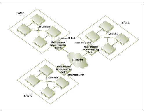 因为传统的SAN扩展方案形成的是一个大型、扁平的光纤通道网络,所以在数据中心之间或不同地理位置的远程站点建立稳健的大型部署配置是十分困难的。类似于上世纪80年代时的连接局域网处于第二层(链路层),,扩展后的SAN在正常数据流通过程中十分容易受到数据泛滥或者广播风暴(broadcast storm)的干扰,有见及此,能够在SAN岛屿间提供连接功能并且保持每个本地SAN独立性的第三层路由功能应运而生。McDATA提供的SecureConnect SAN路由技术配合iFCP协议的使用可大幅减少光纤网络重新配置的问题。