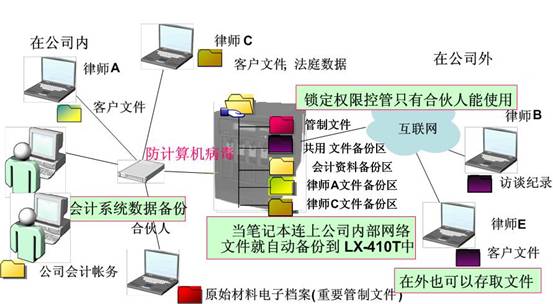 存储在线 12月16日北京消息:张先生是上海某律师事务所的合伙人,主要负责整家事物所的日常经营与管理,自然业务拓展也是必不可少的一部分。上周有江苏的一位企业客户有代理诉讼的需求,张先生就用笔记本带着相关资料去进行初步接触。没想到的是,由于路途中的不甚导致了笔记本硬盘的损坏。这次会面失败而归,更令张先生头痛的是最新的资料还没有在办公室的电脑上备份,近半个月的文件和邮件都找不回来了。由于工作的流动性教强,张先生经常带着笔记本工作,将公司的人力资源信息、财务信息、相关办案资料以及法律法规等资料全部放在笔记本上。一方面,在公司外面要与同事共享一些信息比较困难,也没有条件能实时备份,一旦个人PC出了问题,导致重要资料遗失,造成了时间与机会的错失。另一方面,公司的电脑也经常遭到病毒的袭击,数据与文件的丢失经常存在,给公司的正常运营增添了不少障碍。