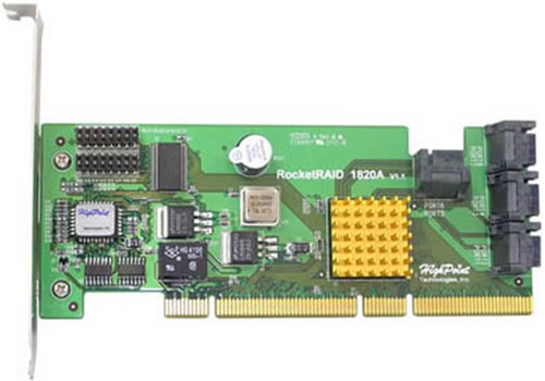 RocketRAID 1820A可以支持8块SATA的硬盘,(从硬盘方面的发展情况来说,SATA是传统ATA硬盘的换代产品,因此RocketRAID 1820A卡所使用的也是最新的SATA硬盘)。使用目前最常用200G硬盘,建立8通道的RAID5阵列,减去存储恢复数据,保证系统安全的一块硬盘,还剩下200G×7,1.4T的容量。这样就很容易的解决了大容量存储的问题,用户还可以根据实际情况加大单盘的容量,建立更大容量的存储系统。