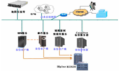 本方案中采用了深圳思创科技发展有限公司的Coinstor Backup Server 4备份软件及其相关选件。CBS提供的无人值守的自动备份、跨平台数据管理、远程数据传输、打开文件备份、数据库管理、灾难恢复、数据迁移等功能使整个数据备份系统的安全性、可靠性和高效性得到更充分的体现。