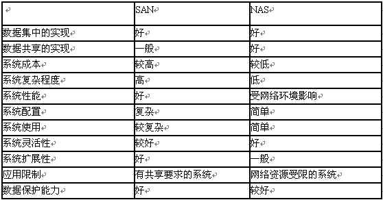 仅就技术而言,SAN和NAS可谓各有千秋。然而无论SAN还是NAS都只是最为基本的存储系统拓扑结构单元,而一个真正的实际应用,往往要求存储系统具有多方面的结构和性能特征。所以我们看到,用户在面对存储系统选择时,总是要无奈的调整甚至放弃掉一些需求,以使自身的应用可以稳定可靠的运行于现有的NAS或SAN架构之上。