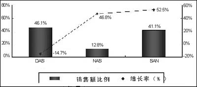 直连存储(DAS)的最大弊病在于,各部分的存储资源相互隔离,容易形成孤岛。而SAN的最大优势则在于,可以把异构环境下不同厂商的存储设备整合在一起,实现资源的共享。业内人士毫不怀疑,SAN将成为存储应用的主流。