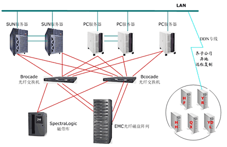 该方案为用户提供了一个完整的、灵活的、先进的数据存储备份系统,完全满足用户对生产数据系统存储备份的可靠性、安全性期望,能够自如地应对不同应用环境的数据存储备份需求,并能够顺畅地随业务的增长而扩充。