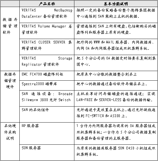 根据我们在上面的关于方案的总体设计原则时要充分考虑高性价比、先进性、可靠性、可用性、可维护性、可扩展性和可升级性、兼容性和互操作性、数据存取速度的要求,所选择的产品均有大量成功案例支持,各产品提供厂家均有可靠的售后服务保证等因素,保证整个配置方案切实可行并且能够体现SAN的真正价值,提高德棉的投资回报率。