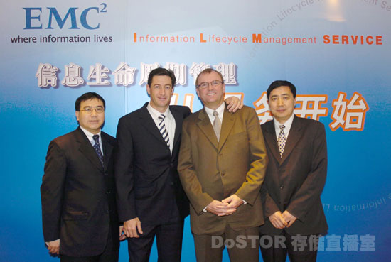 2004-05-25 14:03:58 主持人:尊敬的各位来宾,媒体的朋友们,大家下午好,欢迎大家冒雨前来参加新闻发布会。本次新闻发布会大约有90分钟,从去年下半年开始,大家已经看到在业界不断讨论信息周期管理的这个概念,这个概念一经推出广泛受到关注,在今年2月份EMC推出一系列分级化存储管理平台,表示着我们已经实现了信息生命周期管理,今天将告诉大家怎样去实施,我们的回答是信息生命周期管理从服务开始。下面请允许我介绍一下我们今天到会的贵宾。