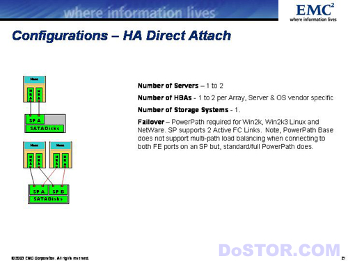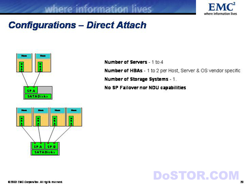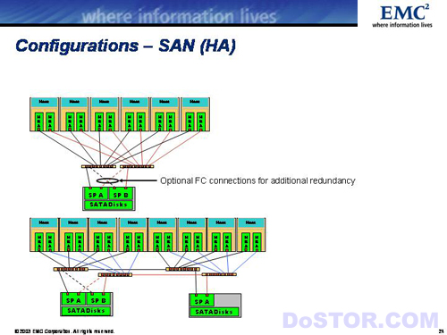 - 双处理器控制器CLARiiON AX100 使用“主动-主动”存储处理器、镜像缓存和双电源,以提供高可用性和端到端的数据保护。