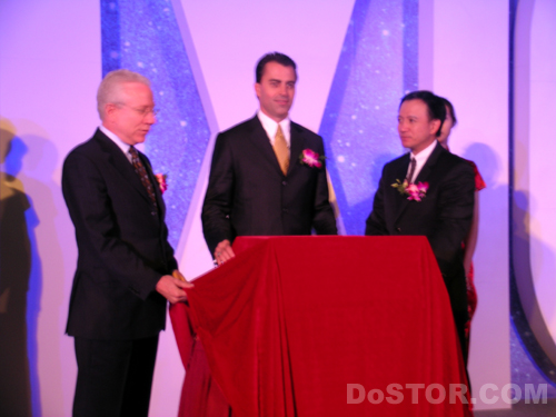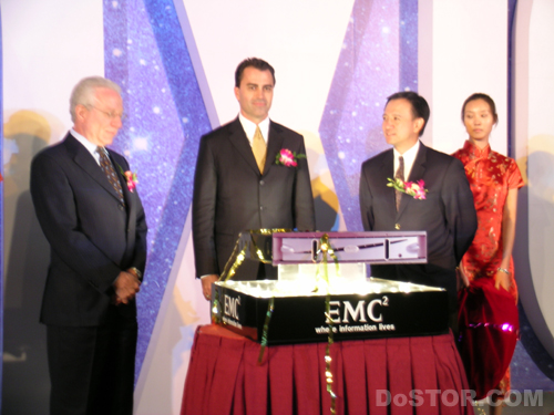最后,EMC公司亚太区及日本区总裁Steve Fitz、EMC公司总部商业系统部门资深副总裁兼总经理Joel Schwartz和EMC亚太区市场推广部总经理梁仲江先生揭开了AX100的神秘面纱。