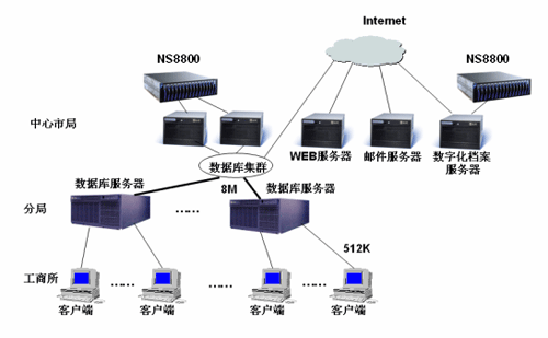 每个工商所通过512KB的专线(或其它方式)和对应的分局相连。