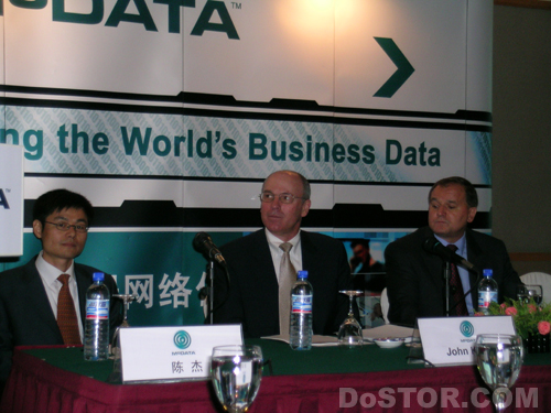 McDATA中国区总经理陈杰、总裁John Kelley和亚太区总经理Paul Rath