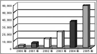 如图所示,在亚太地区,存储市场的平均复合年增长率达到12.6%,即从2000年的24.9亿美元增长到2005 年的45.1 亿美元。相应地,所存储的信息量也将从2000 年的17407TB增长到2005 年的308064TB。