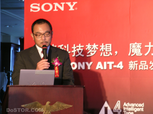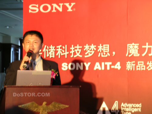 会上Sony公司电子机件香港拓展总部电脑周边设备本部副经理郑亮先生,还就AIT-4的技术方面做了讲解。由于AIT-4驱动器和介质的创新设计使得AIT存储容量和性能的提升的需求成为可能。存储密度从720 Mbit/si到1170Mbit/si,磁带长度增加了7%,加之优化了数据结构,使得磁带容量达到了AIT-3格式的两倍。通过先进的MIG磁头,更高的磁鼓转速和AME(先进的金属蒸发)磁带的结合,备份速度也在不牺牲数据完整性和可靠性的情况下达到了原来的两倍。新一代产品在非压缩情况下达到了24MB/s的持续传输率。