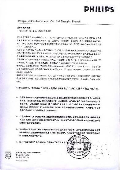 对于之前在市场上销售的,所谓飞利浦“蓝色海星”光存储产品,在此次发布会上也被飞利浦电子彻底否定,并将其代理公司“北京雪泽基”斥为违规操作。飞利浦发表声明称:飞利浦电子在中国内地和台湾省从来没有与其他品牌在光存储项目上进行过品牌合作,作为飞利浦电子唯一品牌标志,在其光存储产品的包装及产品面板上都只标有单独的PHILIPS或“飞利浦”中文标志;对于市场上出现的其他标有“PHILIPS OPTICAL STORAGE”或“飞利浦光存储”的产品,均非飞利浦的合法授权产品。并且,飞利浦电子将对侵犯其品牌产权的代理商“北京雪泽基”保留采取法律手段和追偿的全部权利。