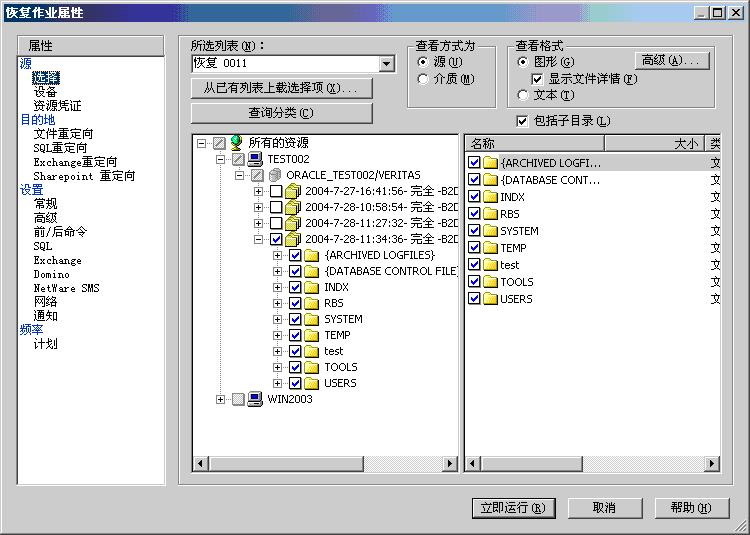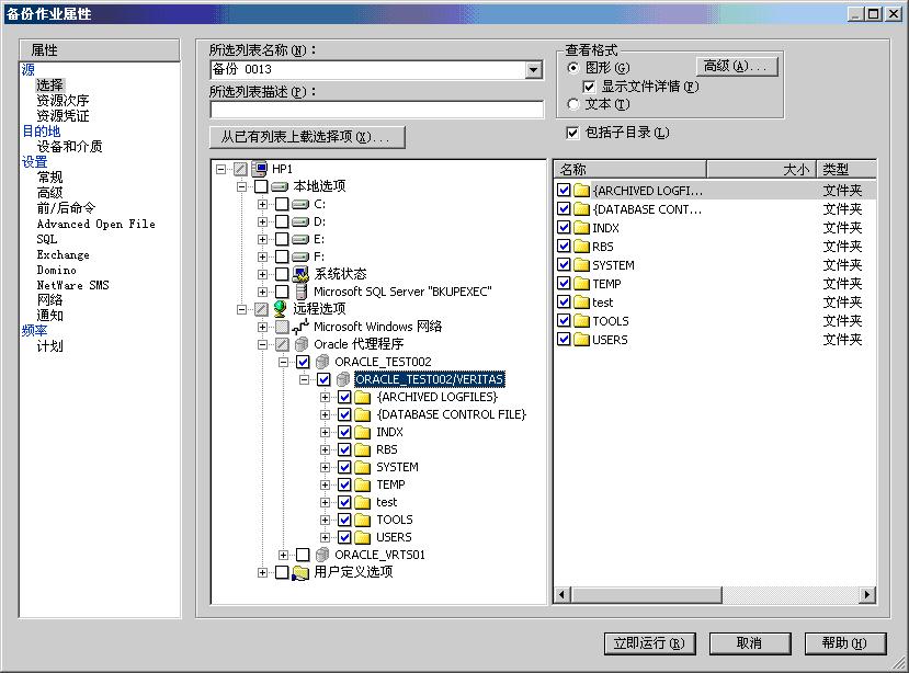 二.利用BackupExec把对test002的ORACLE数据库备份重定向到VRTS01机器