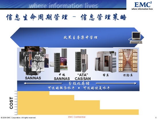 存储在线 8月3日北京消息:信息生命周期是EMC公司一直大力推动的一项存储解决方案。在此次国际信息存储技术高峰论坛上,EMC依旧向用户讲解如何实施信息生命周期管理,以及实施ILM对企业发展的推动作用。